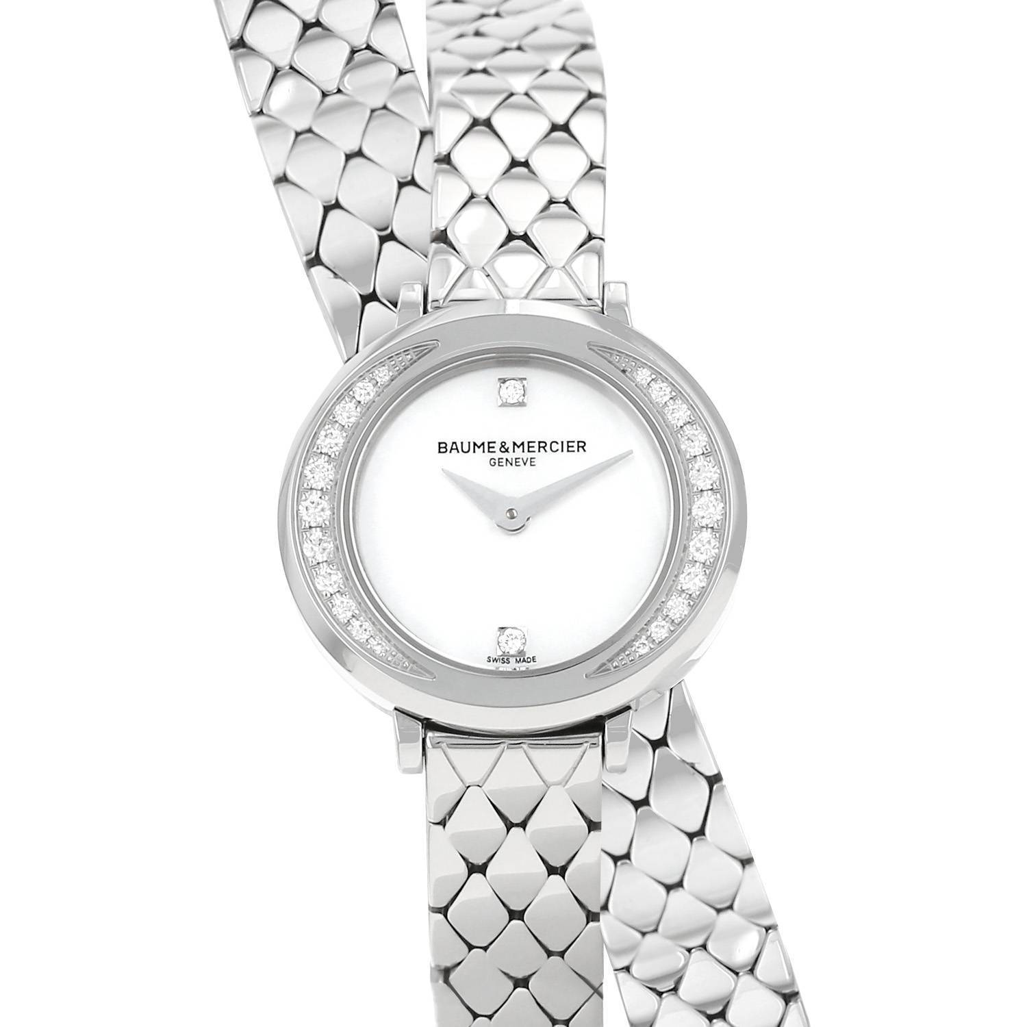 Montre bracelet Baume & Mercier Promesse en acier. Boitier rond en acier diamanté, fond vissé, couronne intégré au boîtier.