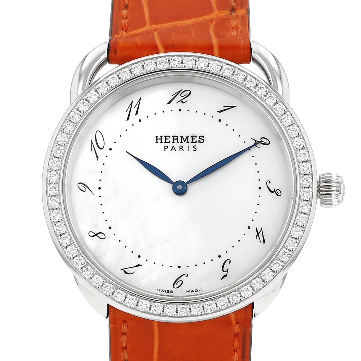 Montre bracelet Hermès Arceau en acier. Boitier rond en acier, fond vissé, lunette diamanté, couronne cannelée.