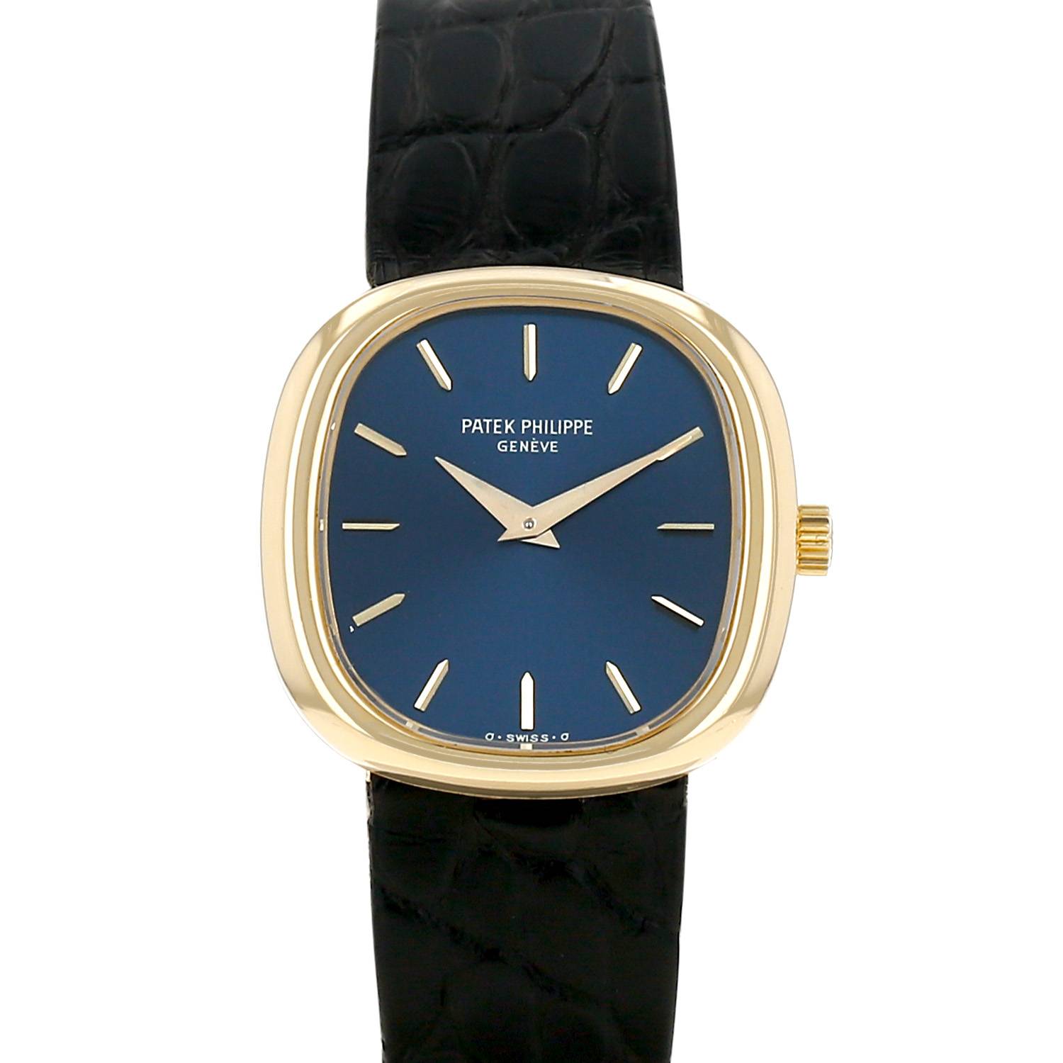 Montre bracelet Patek Philippe Golden Ellipse en or jaune. Boitier ovale en or jaune, fond clippé, couronne cannelée.