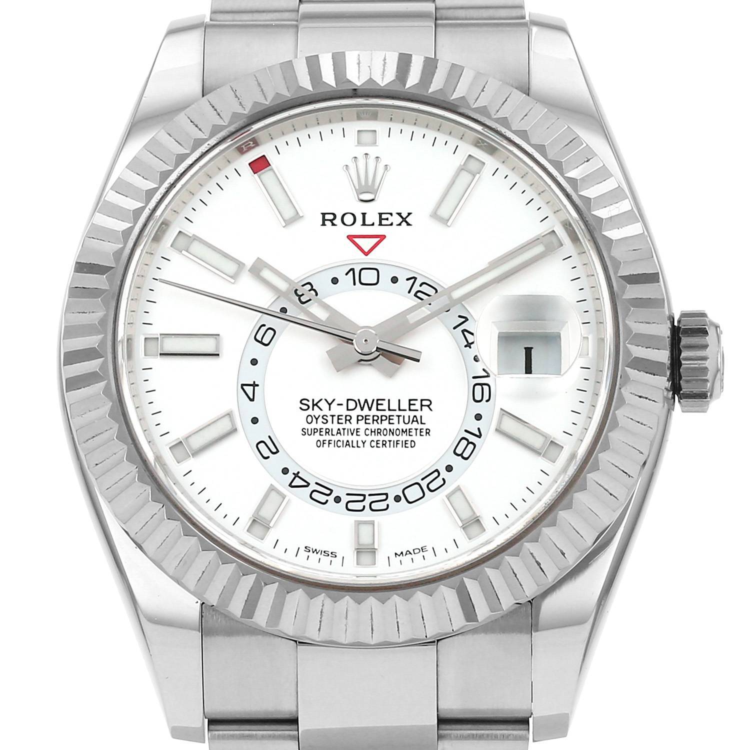 Montre bracelet Rolex Sky Dweller en or et acier. Boitier rond en acier, fond vissé, lunette striée en or blanc, couronne vissée.